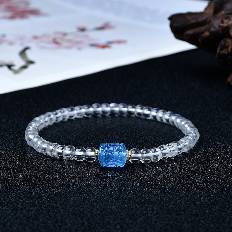 Natural White Crystal & Aquamarine Barrel Bead Bracelet – S925 Silver Accents