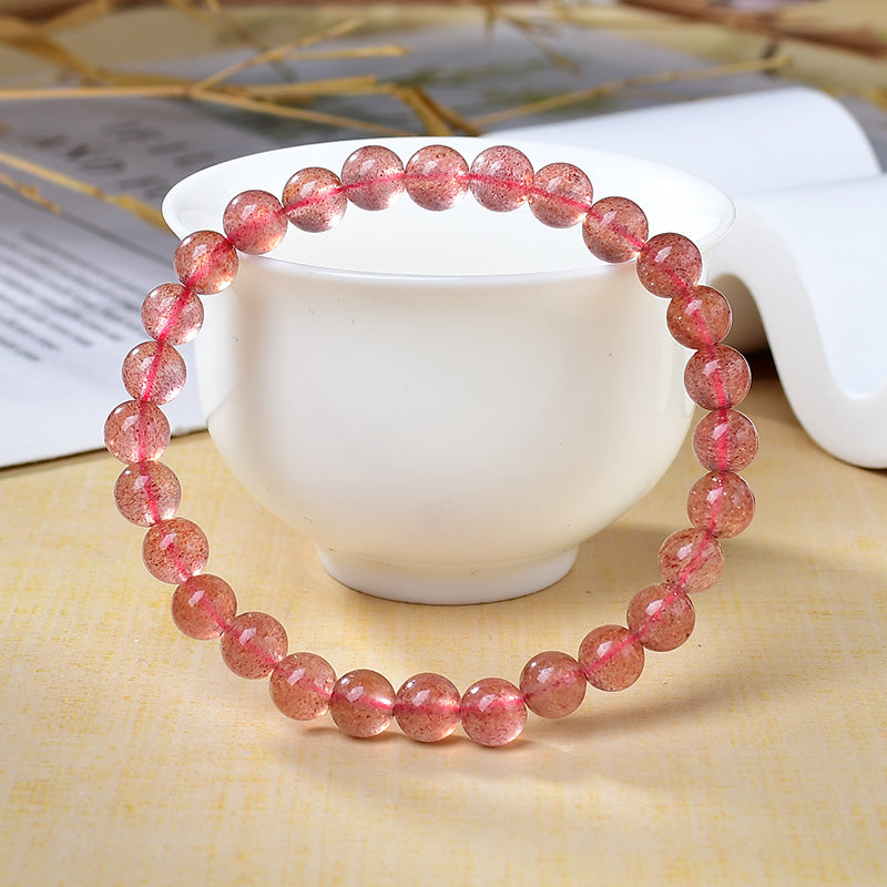Natural Pigeon Blood Red Strawberry Crystal Beaded Bracelet - High - Quality, Clean Crystal with No Impurities