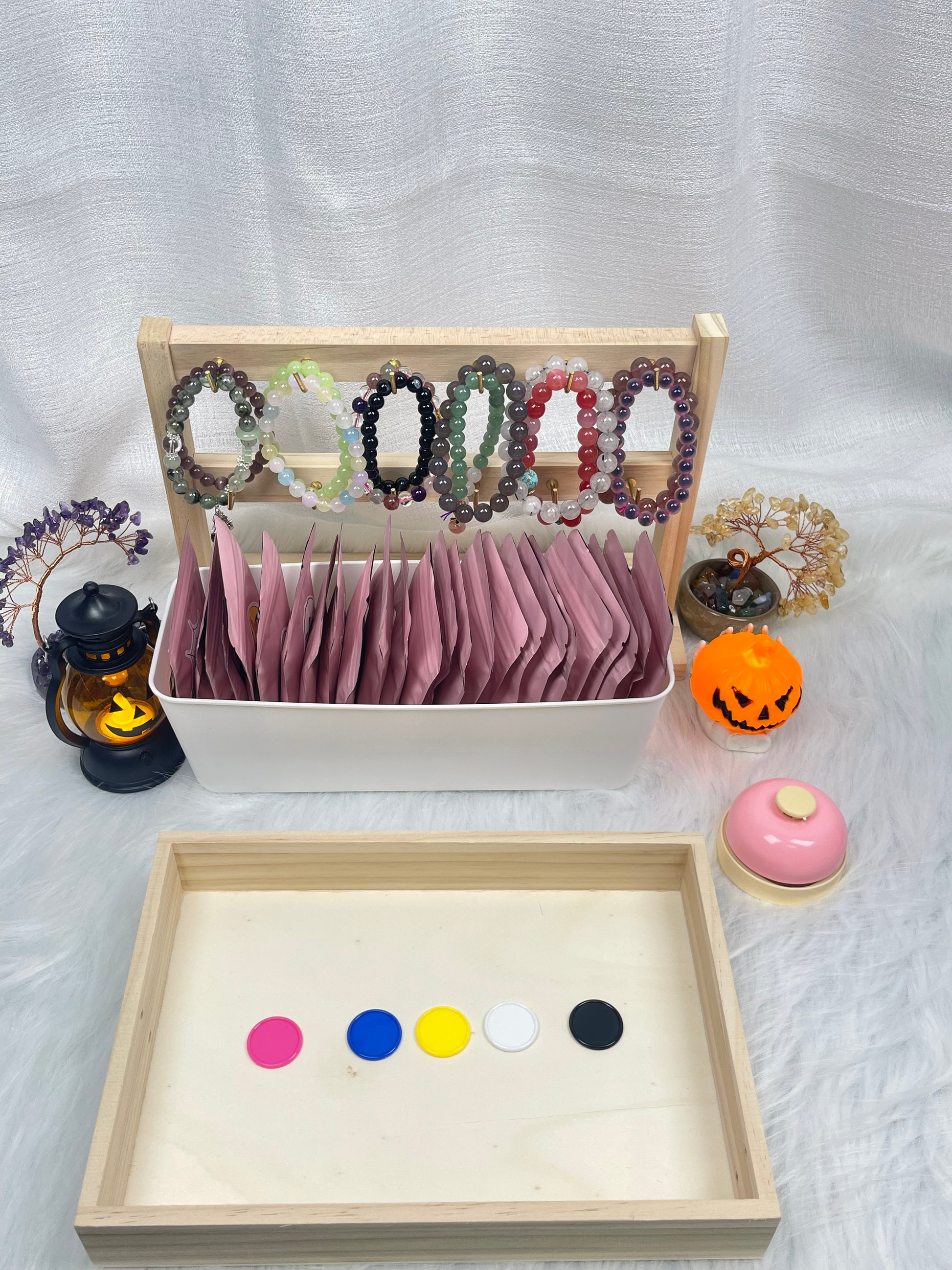 1.Each blind bag contains a 100% natural crystal/agate/jade jewelry and a color tag.