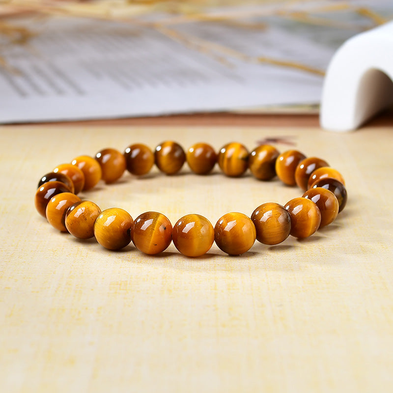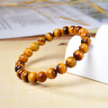 Natural Yellow Tiger’s Eye Round Bead Bracelet (Wood - transformed Stone)